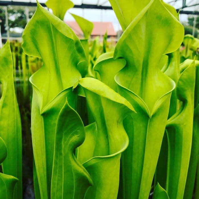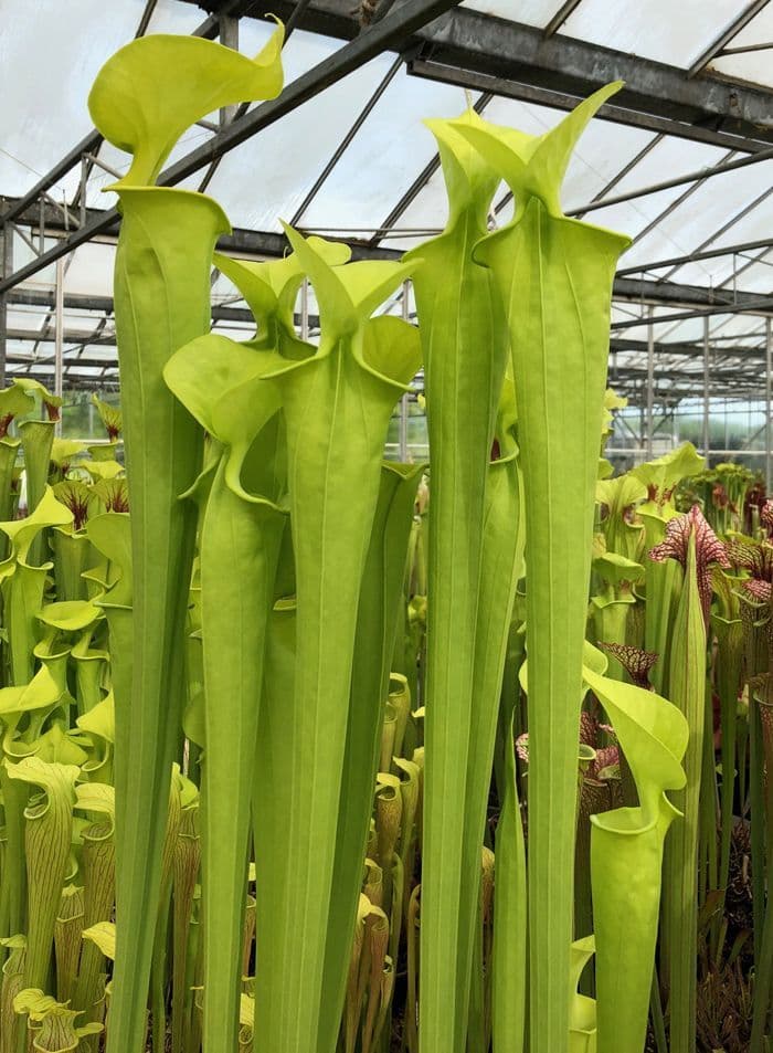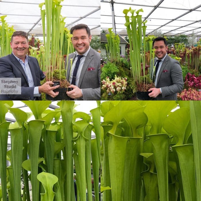 DESCRIPTIONThis is one of our own select forms of Sarracenia flava var maxima named for James Wong at the RHS Chelsea flower show May 2018. This is a fantastic form producing very strong growing and extremely tall pitchers to around 1 metre+! throughout the growing season. Semi mature to mature divisions of this original plant shown sent ready potted UK