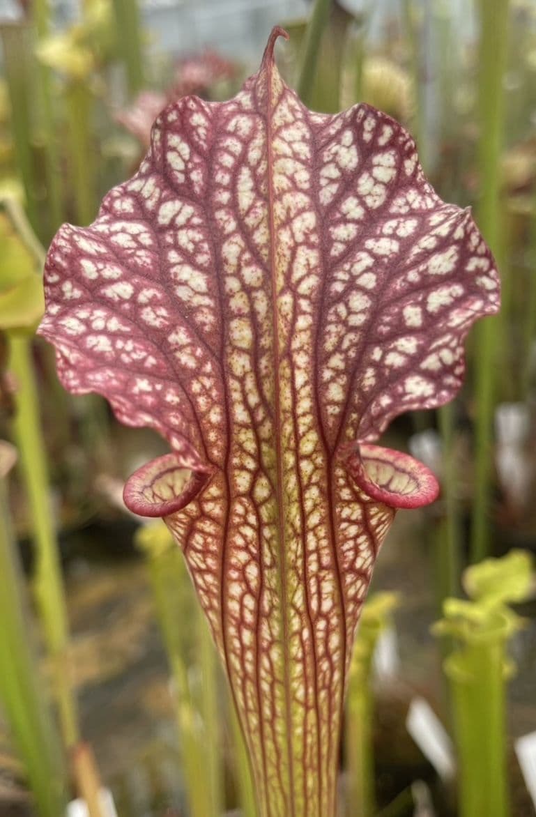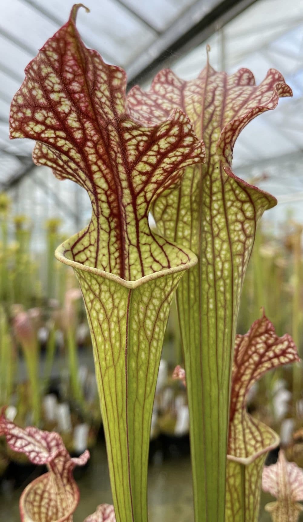 DESCRIPTIONBright red netting over white topped pitchers, really vigorous strong growing hybrid, pitchers to around 70 cm, plants from division from original plant will be sent out ready potted